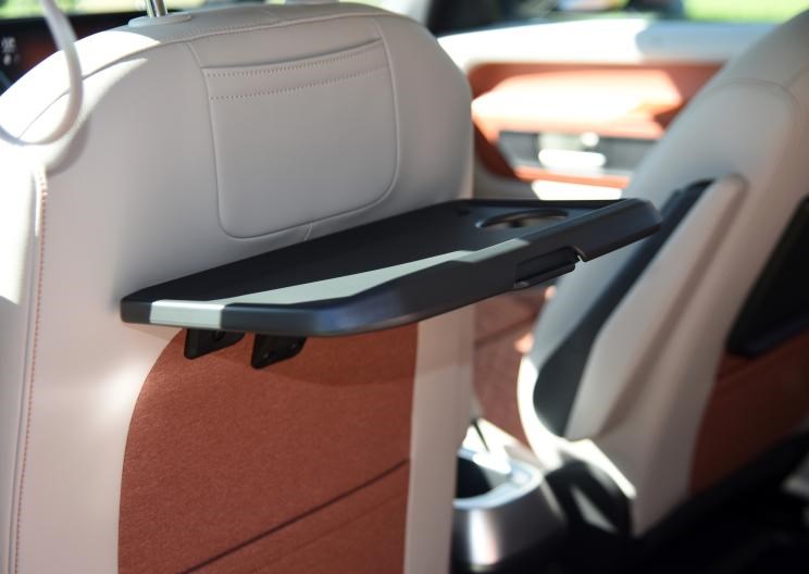 在中控台上、中央过道、车门上能够看到丰富多样的储物空间,这是一款更注重实用性的车型。前排座椅有大大的ID.家族标识,前排座椅除了电动调节外,还具备座椅记忆和加热功能,同时还带有可调节的中央扶手和腿托。后排座椅可以4/6前后移动,或者靠背放倒,每个座椅都有独立的小桌板,但后排座椅是手动调节。另一个比较遗憾的是,这款车并没有配备天窗。