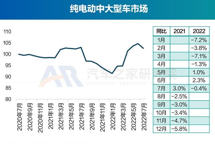 7月,纯电动市场的价格指数为98.56,同比上涨8.27%,环比下降0.25%,细分市场整体均价为17.25万元,较去年同期涨2.04万元,较上月涨2.32万元。