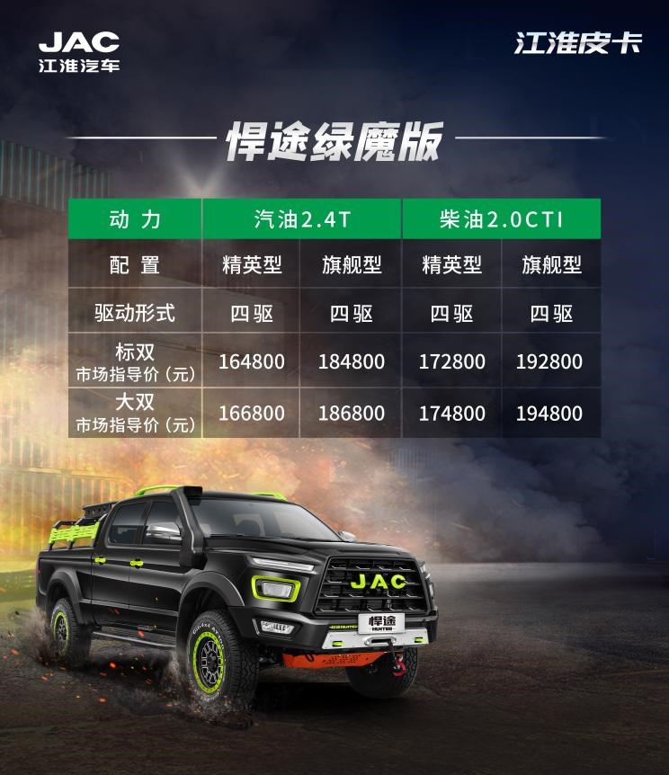 2022成都车展上,悍途(参数|询价)绿魔版正式上市,售价区间为16.48-19.48万元。作为一款用户共创车型,新车主要是在外观和越野套件上进行了升级。