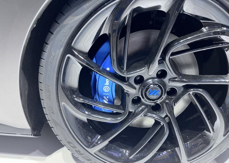 来到车侧,新车拥有修长的身材,腰线从前翼子板处一直延伸至尾灯组附近。同时,新车换装一款黑色21英寸轻量化轮圈,内部还将配备Brembo蓝色卡钳,可以起到非常不错的点缀作用。