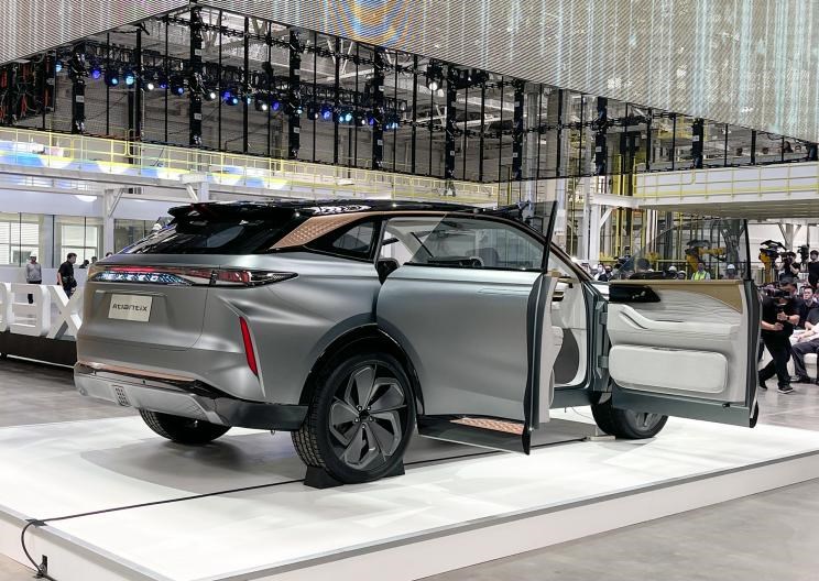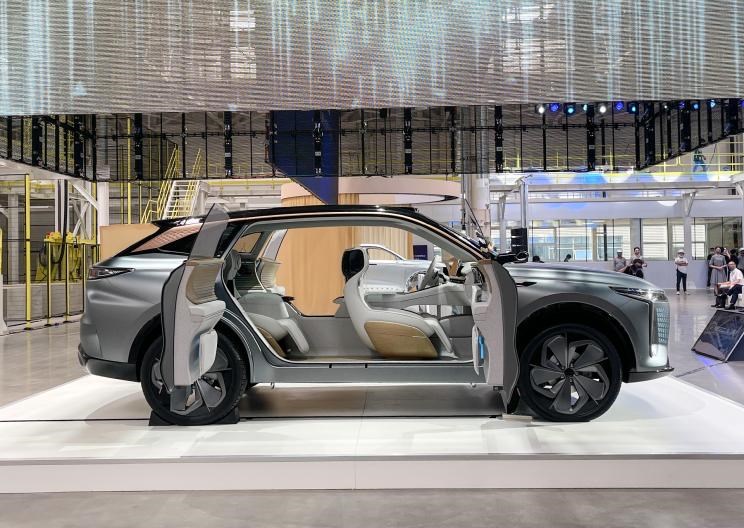 新车的座舱内部采用了当前非常流行的极简式设计,同时,对开门设计也进一步增强了车辆的科幻属性。可以看到,相比我们印象中的概念车,新车的中控台设计还是很“接地气”的,24.6英寸双联屏设计以及横向四辐式方向盘的雏形已经比较明显了。此外,新车内部的四个座椅采用了独立设计,看上去拥有不错的包裹感。