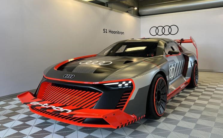 在8月19日圆石滩车展期间,奥迪运动为Ken Block打造的奥迪S1 e-tron(参数|询价) Quattro Hoonitron亮相,该车搭载大量空气动力学套件,十分有气势。