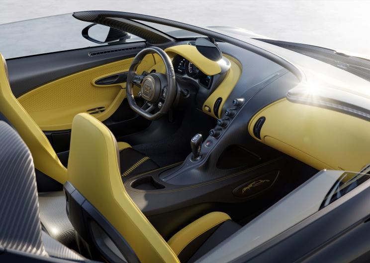 对于内饰的搭配,新车选用了黑黄配色,温暖的黑色与带有些许黄色调的松露棕色充满了车辆的内部,这一配色可以说是布加迪经典中的经典,它同时也致敬了Ettore Bugatti,因为他收藏的大多数布加迪车型都选择了这一经典配色。