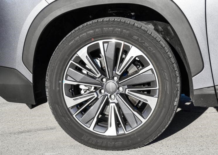 侧面来看,捷途大圣(参数|询价)的线条设计十分简洁,车窗腰线在后门处逐渐上扬最终交汇于D柱,使得整车姿态更加运动。此外,前后轮眉上方采用黑色护板来增强运动感,同时配备双色20英寸密辐条轮圈。值得一提的是,新车还将配备隐藏式门把手。具体尺寸方面,新车的长宽高分别为4590/1900/1685mm,轴距2720mm,定位于一款紧凑型SUV。