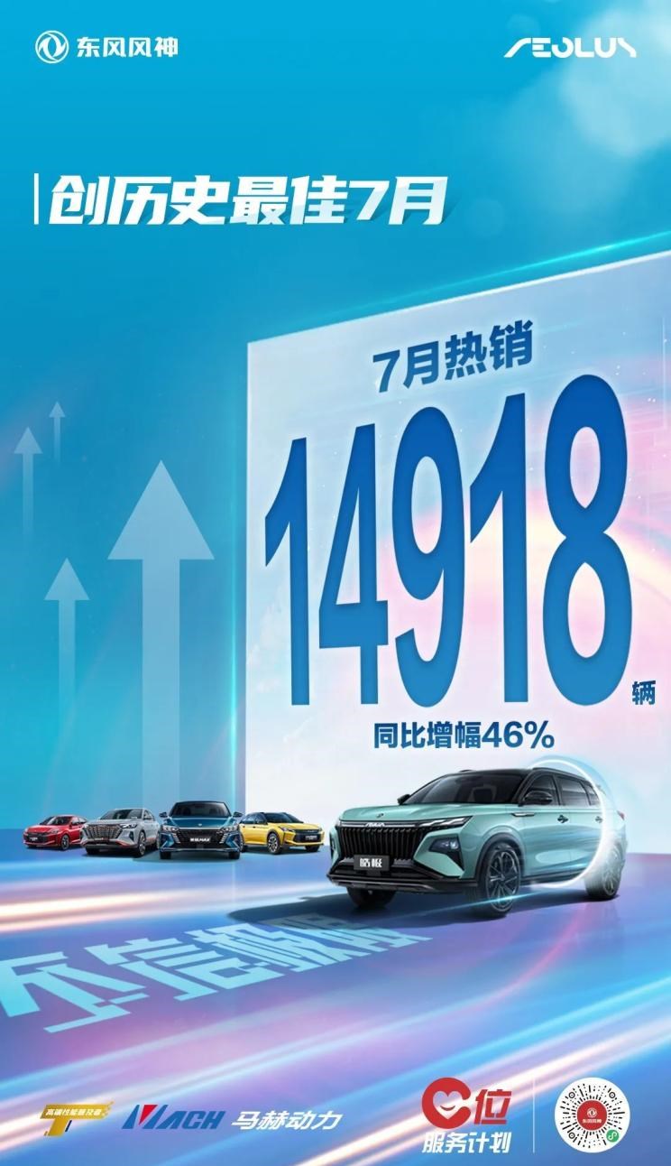 东风风神7月销量为14918台,同比增长46%。值得一提的是,这也是东风风神历史上的“最佳7月”。