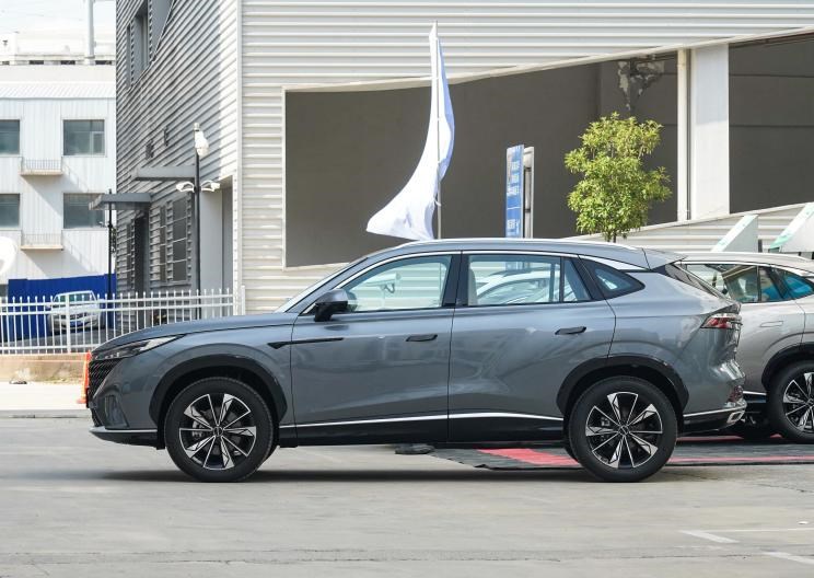 新车侧面造型十分流畅,一条笔直的上腰线从车头延伸至车尾,进一步提升了车辆的视觉长度。不仅如此,新车还采用了隐藏式门把手,在降低一定风阻的同时,提升了车辆的科技感。尺寸方面,新车长宽高分别为4655/1890/1655mm,轴距为2765mm。