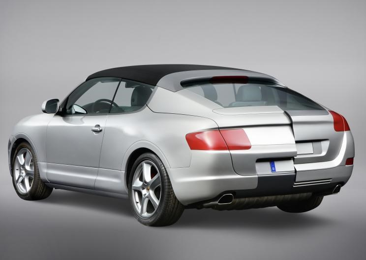 与此同时,新车的车身也经过了重新设计,拥有更短的A柱和风挡玻璃,双门造型的它比量产初代Cayenne的前车门加长20cm。不过新车的尾部呈现出左右不对称的设计,这也证明出新车尚未完成设计评审工作。同时作为模型车设计师并没有为这款敞篷车型进行必要的车身加固措施,所以也导致该车无法进行驾驶,只能被运送到目的地。