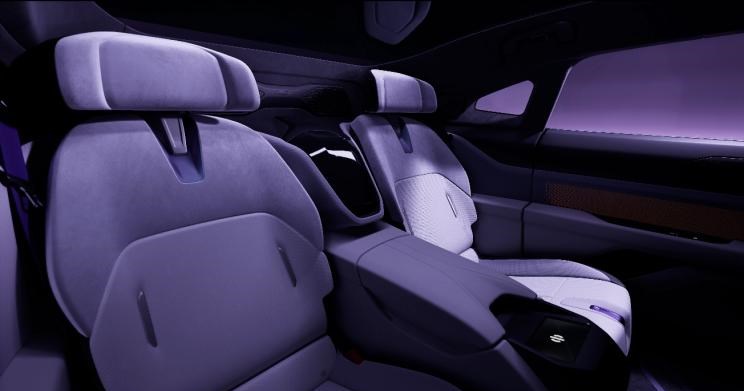 新车车内的座舱设计充满科技质感,该车取消了仪表盘,取而代之的是HUD+中控屏幕的做法,其中中控多媒体显示屏背后是一根机械臂,所以除了可90度旋转外,还能做一些多维度的动作,比如跟着某个音乐节奏一起摇摆。车辆的座椅也或采用可变色环保材质镭射座椅,配合突出科幻未来的座舱氛围。