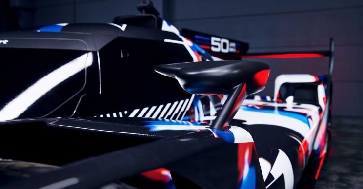 新车采用宝马M部门经典的迷彩配色涂装,车身的各处细节我们也能够发现非常“宝马”的设计元素,比如新车前格栅处采用了标志性的双肾式前格栅设计,即便这是一款LMDh赛车,我们也可以轻松地辨别出它的身份。同时,扰流板上的“50 JAHRE”也意味着,这是一台用来致敬M部门50周年的献礼车型。细节方面,车身还以抽象的方式叠加了宝马1976 3.0 CSL和1981 M1/C等经典赛车的照片,甚至在车窗还保留了类似“霍氏拐角”的设计。