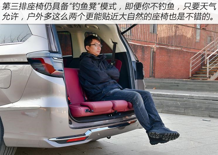 细节方面,新车前排取消了中央通道,主驾侧采用超大尺寸扶手,在副驾还新增了一个储物格,内部设有USB接口可为设备充电。第二排靠近通道的扶手可进行拆卸,中间还增加了小桌板。另外第三排座椅可以折叠至地板内部,使第二排座椅可以完全放倒。另外第三排座椅还有“钓鱼凳”模式,也是外出野营、垂钓的好帮手。