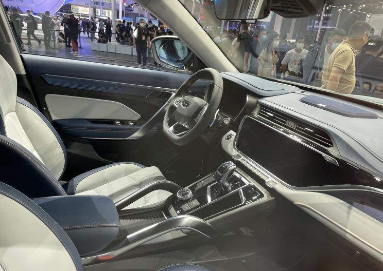 内饰方面,新车的中控台区域在博越基础上进行了全面的提升,三色内饰更显档次感,大尺寸中控屏和空调面板按键进行了重新的整合,整体感变得更强,变速器排挡区域的按键也重新布局,整体视觉明显提升。