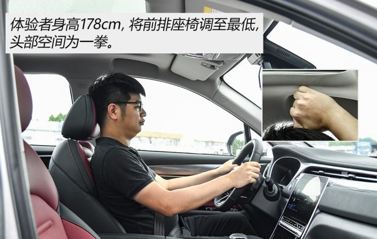在乘坐空间方面,在我们体验中,身高为178cm的体验者在前排调整好座位后,他的头部空间剩余一拳;保持前排位置不变,当体验者乘坐后排时,其头部空间剩余一拳,腿部空间则为两拳,表现值得称赞。