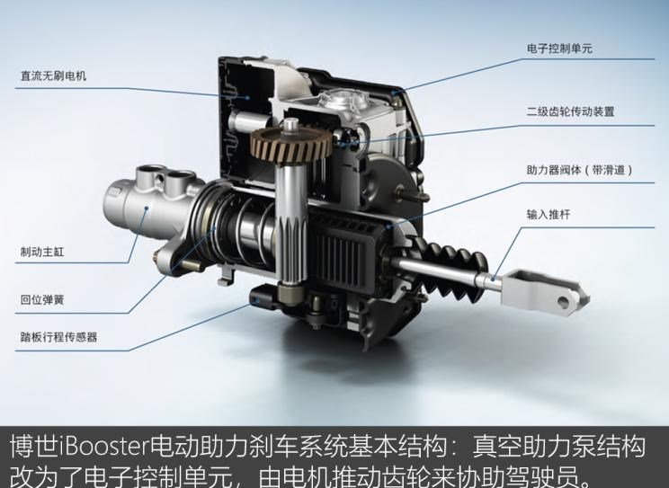 在目前网上众多的分析版本中,特斯拉采用的iBooster电动助力刹车系统被反复提及,那么在这里再为大家普及一下iBooster的相关知识。作为一款纯电动汽车,特斯拉采用了来自博世的iBooster电动助力刹车系统,这套系统由电传动机构代替了传统的真空助力器,由电机协助驾驶员的右脚,来推动制动主缸来提供推动刹车卡钳的动力。简而言之,就是由电动系统取代了真空助力器来协助驾驶员推动制动主缸,从而令刹车卡钳抱住刹车盘来提供制动力。