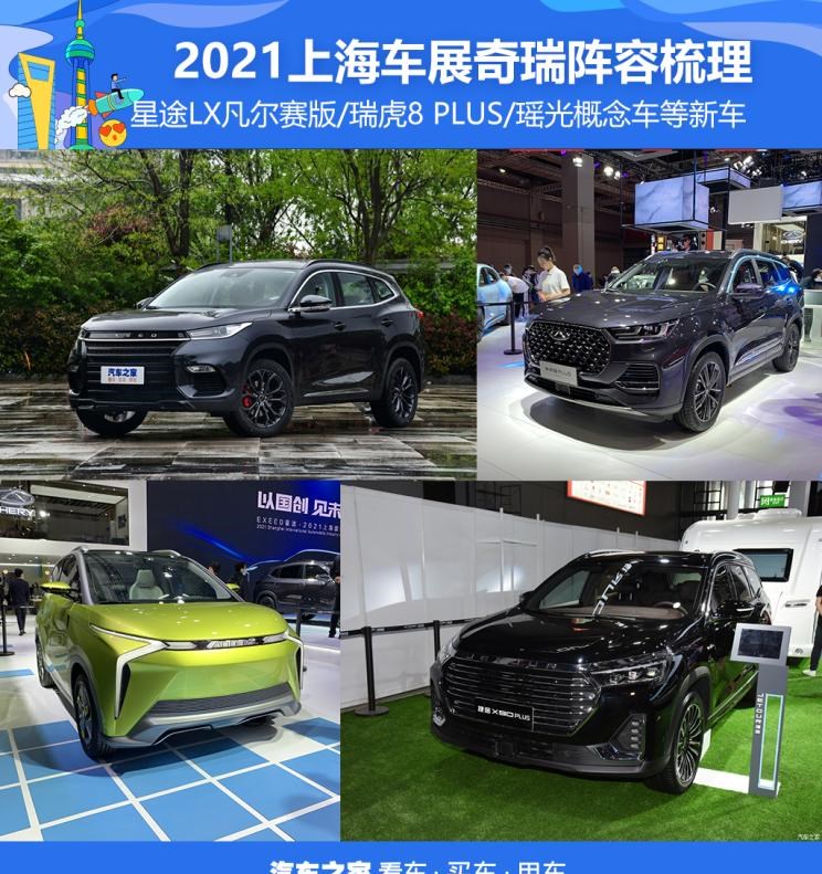 2021上海车展已经正式拉开了帷幕,在本届车展期间,奇瑞汽车与其下子品牌捷途、星途一同带来包括捷途X90 PLUS(参数|询价)、瑞虎8 PLUS混动版、星途LX凡尔赛版、大蚂蚁X概念车、小蚂蚁Z概念车、瑶光概念车等多款重磅车型。今天这篇奇瑞汽车上海车展新车梳理,将为你盘点这些新车型。
