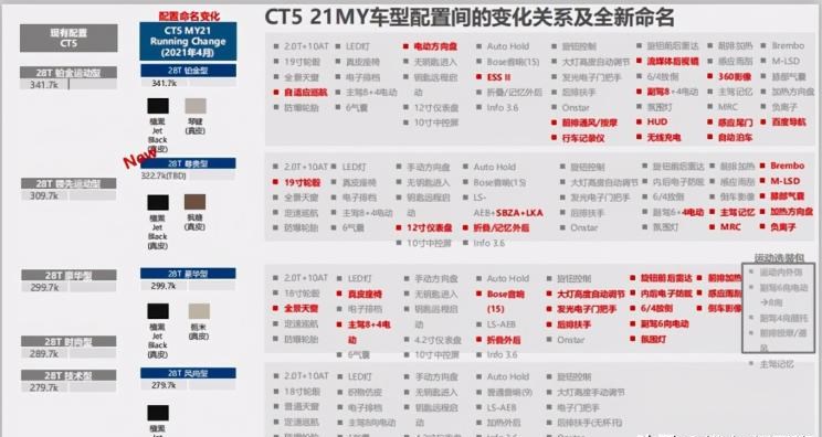 新款凯迪拉克CT5疑似配置和疑似售价2021款车型调整后的新款车型新款疑似售价28T 技术型28T 风尚型27.9728T 时尚型28T 时尚运动型28T 豪华型29.9728T 豪华型28T 尊贵型32.2728T 领先运动型28T 铂金运动型28T 铂金型34.17 从曝光的这份配置单来看,2021款凯迪拉克CT5上市在即,具体来看将取消了老款技术型、时尚型和领先运动型。并推出入门级风尚型、尊贵型,与豪华型和铂金型组成新款全部4款车型阵容。