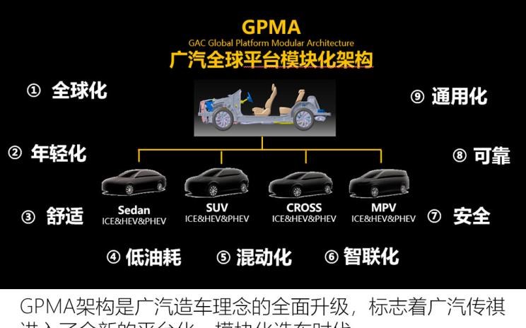 面向全球主要汽车市场开发的平台化模块化架构,涵盖了轿车、SUV、MPV、PHEV、HEV等车型,动力系统包括传统燃油发动机,PHEV、HEV等混合动力。