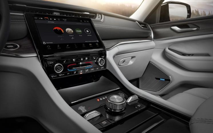 新一代大切诺基L内饰的变化是非常彻底的,中控台采用对称式设计,并配备有10.3英寸全液晶仪表盘,中央控制屏幕标配8.4英寸,并提供10.1英寸可选,并内嵌UConnect 5娱乐信息系统,支持苹果无线CarPlay和Android Auto以及4G LTE Wi-Fi热点。同时新一代车型的亮点在于提供三排座椅设计,标配为2+2+2式六座布局,其中第二排座椅还配备有扶手,提供更强的舒适型。当然在配置方面,全车还提供12个USB和USB-Type C接口,19扬声器音响、自适应巡航、夜视系统、以及L2级别的自动驾驶辅助系统等。