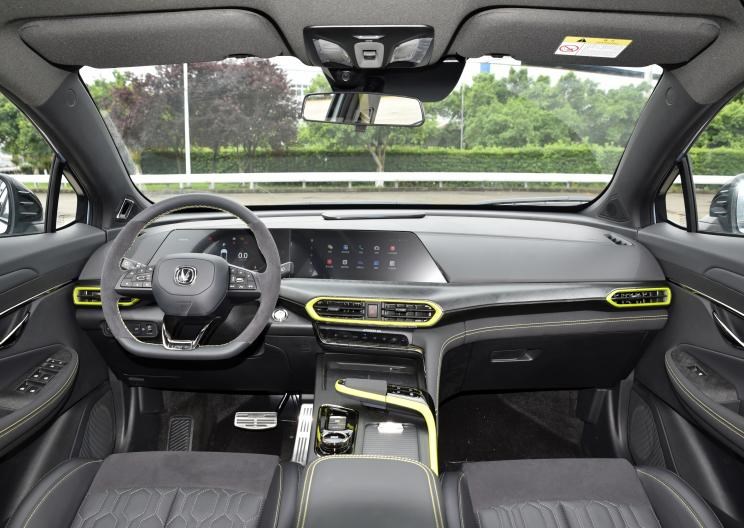 内饰的整体设计无法做出太大调整,但通过全新材质的应用,运动气质也是十分凸显的。三辐式方向盘更换为Alcantara材质并带有黄色缝线,全新的一体式座椅设计,通过皮革缝线工艺以及黄色沟边工艺的加持,让整车的质感得到提升,搭配黄色安全带,更是彰显出个性十足。