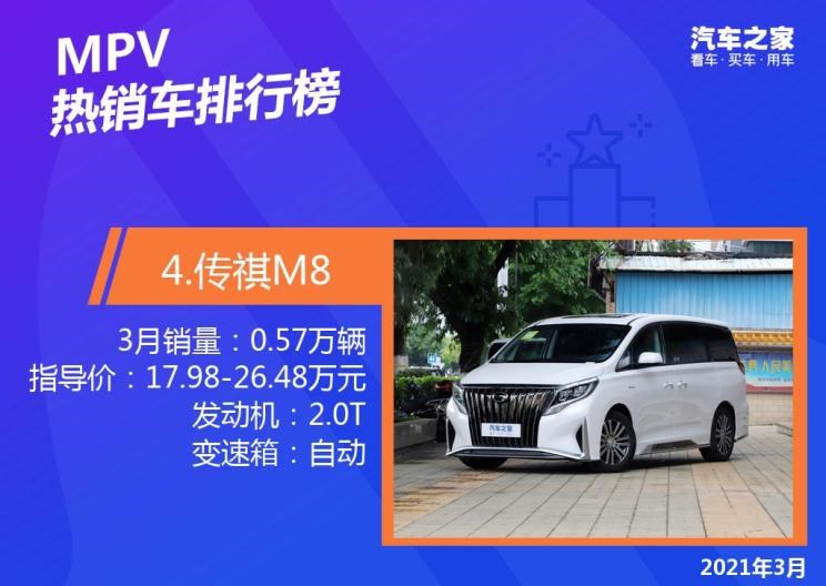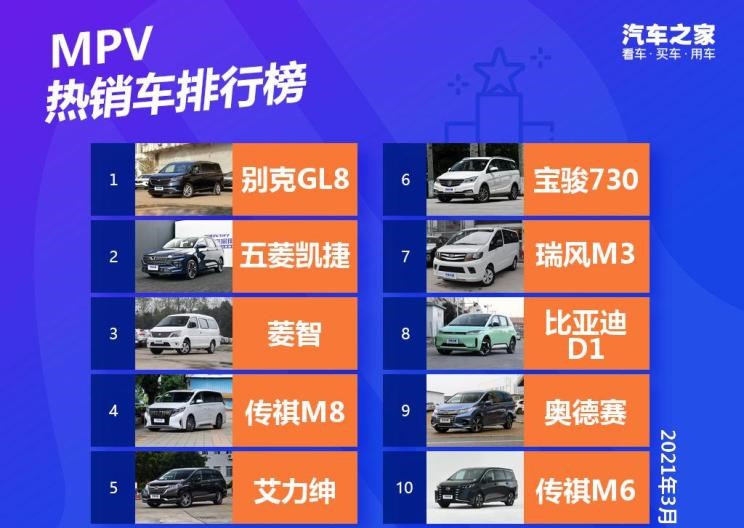 2021年3月国内热销MPV排行榜榜单出炉