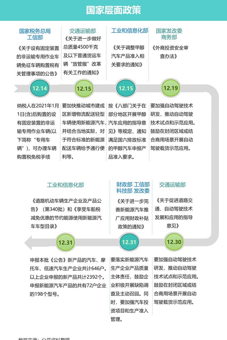 其中,12月31日财政部、工业和信息化部、科技部、发展改革委联合发布了《关于进一步完善新能源汽车推广应用财政补贴政策的通知》指出,2021年,新能源汽车补贴标准在2020年基础上退坡20%。为平缓补贴退坡力度,保持技术指标门槛稳定,2021年保持现行购置补贴技术指标体系框架及门槛要求不变,将有利于平稳2021年新能源车发展的销量提升速度,实现新能源车较快增长。