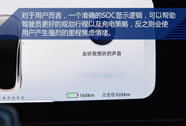 关于车辆剩余续航显示逻辑问题,首先我们认为,从用户角度而言,对于剩余续航显示最大的诉求是什么?是精准。用户希望看到表显续航剩余100公里,就真能实际跑100公里;假如表显剩余续航不准的话,对于用户的充电策略、行程规划等,都会带来巨大的影响。