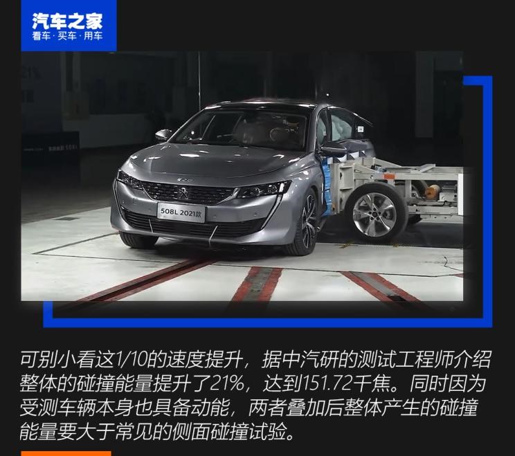 此次东风标致508L联合C-NCAP进行的侧面碰撞有别于普通的侧面碰撞,官方的活动介绍上特别注明了“国内首次公开满载高速双向侧面碰撞试验”。