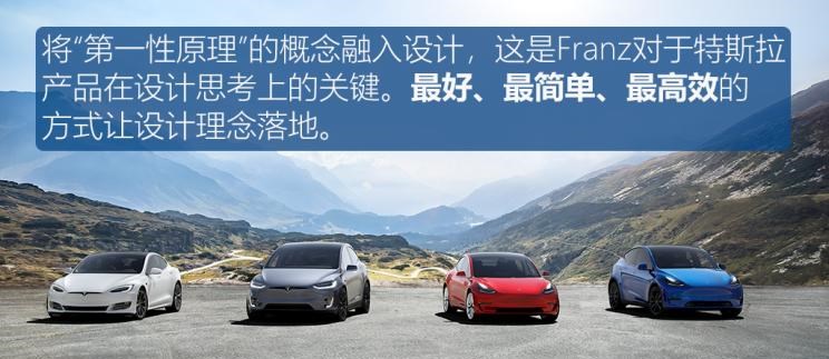 “特斯拉没有具体的设计理念来限定特斯拉车辆的外观设计。”设计理念就是没有理念,Franz非常直白回答了这个问题。“我觉得好的设计是要漂亮的、隐形的,而且要效率高、能解决问题,且解决问题的方式让人很放心。”Franz谈到特斯拉的设计DNA时再次重申了这一理念,他认为每一台车要有最好的解决方案,而不用去遵循某一些设计语言或者DNA:“特斯拉的DNA是效率和纯电动,我们关注用户在不同价格上可以买到更加清洁、更加环保的车,”