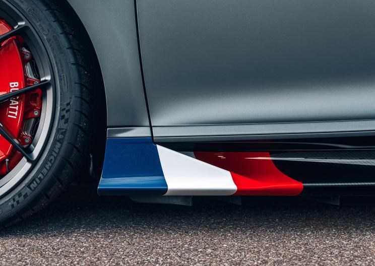 车身侧面,新车在前翼子板末端手工绘制了“Nieuport 17”飞机的螺旋桨图案,并在侧裙前端涂有蓝、白、红三色的法国国旗。此外,新车还使用了双五辐式轮圈与红色的制动卡钳以及陶瓷碳纤维的刹车盘。