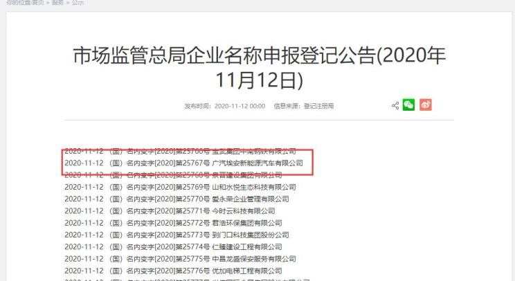 日前,国家市场监督管理总局企业名称申报登记公告显示,广汽埃安新能源汽车有限公司的名称已经申报。结合此前消息,埃安品牌将会在本月宣布独立,不排除会在广州车展期间宣布。