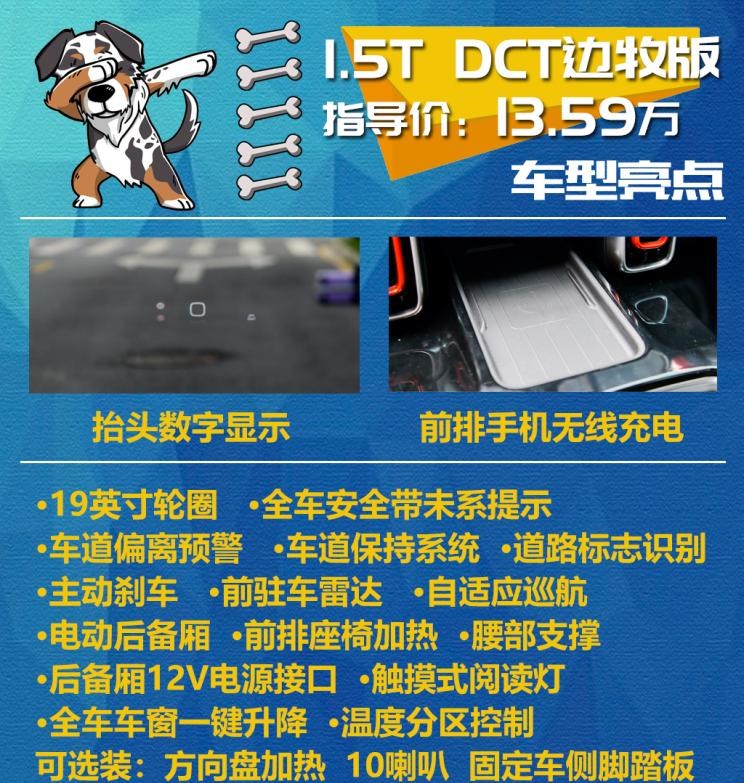 四个犬种之中,边牧的智商应该是最高的了。相比拉布拉多版多出的6000元,这6000元也让这台车变得更加聪明,多了车道偏离预警、车道保持、主动刹车及自适应巡航,光这几个配置就可以大大提升驾驶者在长途驾驶中的舒适、省心程度。抬头数字显示非常实用,基本上属于用上就离不开的配置,大大减少驾驶中实现离开路面的次数,提升安全性。主动安全配置及便捷舒适性配置的提升让这台车更具性价比,就像“边牧”在所有犬种中智商拔萃的情况一样,哈弗大狗的边牧版也是相对比较明智的选择,五星推荐。