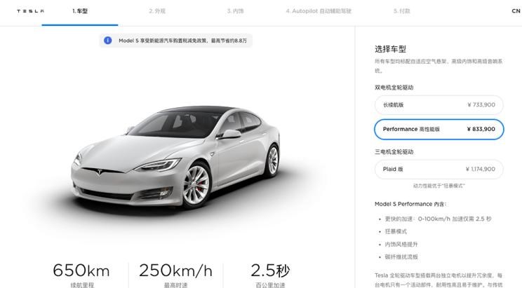 日前,我们从官方获悉,特斯拉官网针对在售的Model S(参数|询价)长续航版、Performance高性能版的价格进行了下调,调整后售价为73.39万、83.39万元,降价幅度均为2.3万元。长续航版的NEDC续航里程为660km,0-100km加速时间为3.8秒;Performance高性能版0-100km加速时间仅为2.5秒。