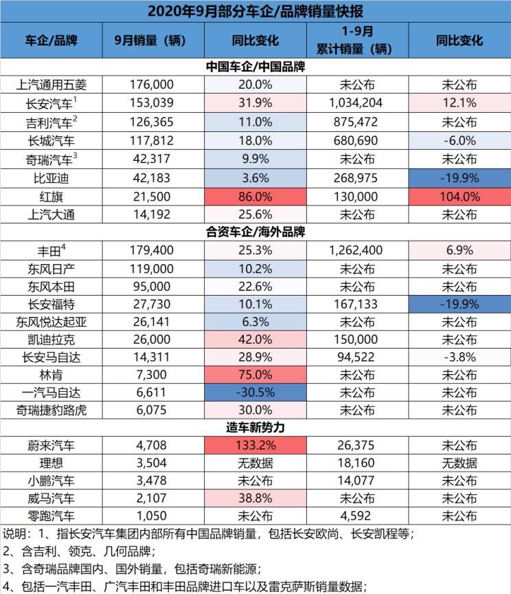 接下来我们就一起看看9月份各大车企分别取得了怎样的销量表现。