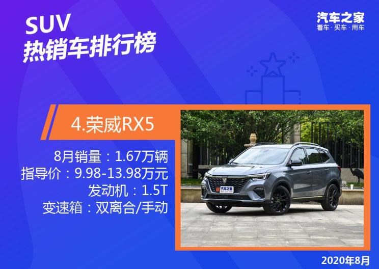 ● 2020年8月国内SUV销量排行榜: