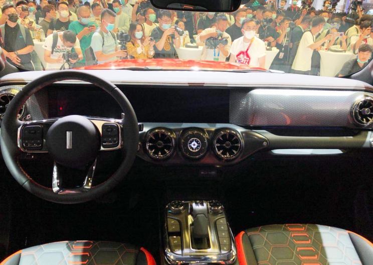 内饰方面,新车的内部设计理念遵循了硬派越野的风格,大面积的方直轮廓线条搭配圆润的倒角,此外圆型空调出风口和圆形功能旋钮配以方菱形缝线内饰板,搭配起来更有质感。同时,由双12.3英寸全液晶仪表+中控液晶屏组成的一体式连屏,巧妙的提升了该车的科技感。
