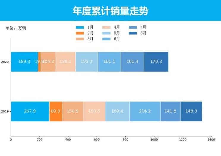 从累计销量数据来看,2020年1-8月,乘用车累计销量1099.5万辆,同比累计下跌18个百分点。较去年累计情况相比,乘用车累计销量降幅增加15个百分点。从1-8月销量情况来看,汽车销量整体仍处于低位运行,国内消费信心的完全恢复尚需一段时间。