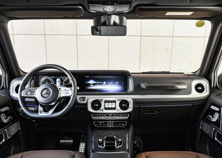 内饰来看,布局与现款G级完全相同,同样采用了双联屏设计,Burmester柏林之声音响肯定也不会缺席。此外标志性的“三把锁”以及低速越野按键也都还在,并没有因为发动机的变化而缩减四驱系统的配置。