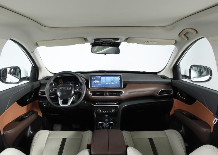 内饰方面,设计风格十分简洁,座椅采用棕色皮质包裹,配以平底式方向盘、多功能按键,以及全液晶仪表盘和8英寸的悬浮式中控屏。
