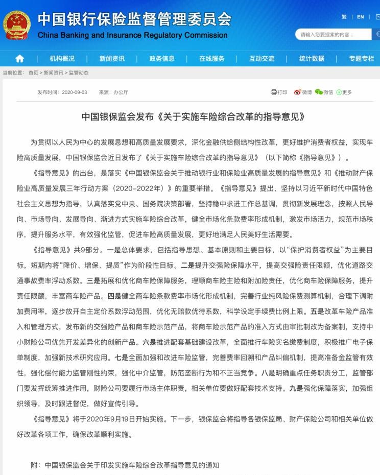9月19号实施 车险改革指导意见发布