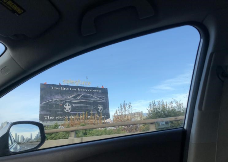 近日有外国网友在社交网络上晒出一张刚刚拍摄的照片,图中是一个高速路边的广告牌,广告宣传的是“新Supra(参数|询价)”,但图片中却是几十年前的上一代车型,是广告公司搞错了吗?