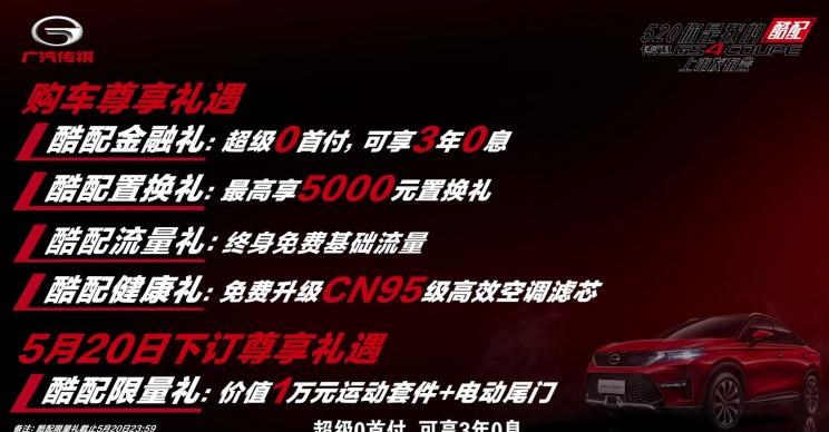 广汽传祺GS4 COUPE 指导售价车型售价270T 自动智联科技版13.68270T 自动尊享版14.68