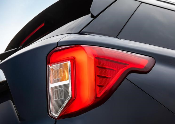 车尾部分设计简洁有力,带有EXPLORER字样的粗大银色饰条和尾部下面的银色装饰给车辆带来提臀的视觉效果。C字型尾灯跟第五代相比变化不大。海外的双边共四出排气在国内调整为两出,使后备厢下沿较低,硕大的后备厢盖占据车尾,体现出家用车载物的便捷特性。