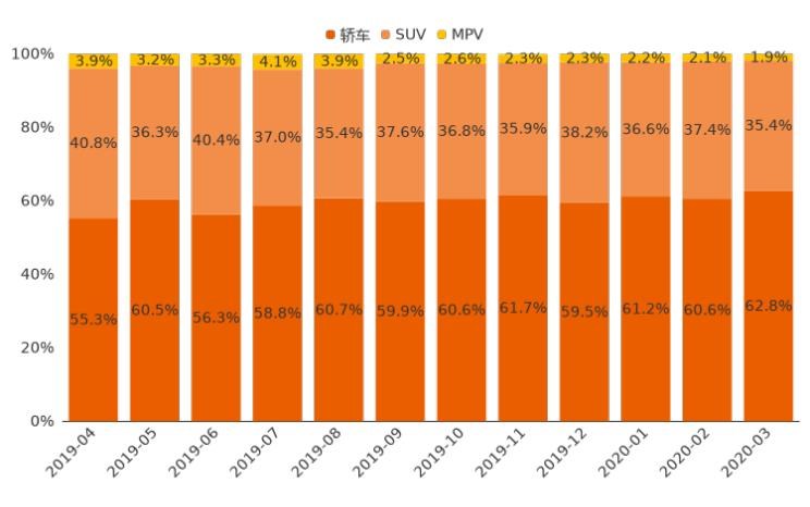 ■ 分车型级别走势:轿车用户占比上涨,SUV意向占比下滑