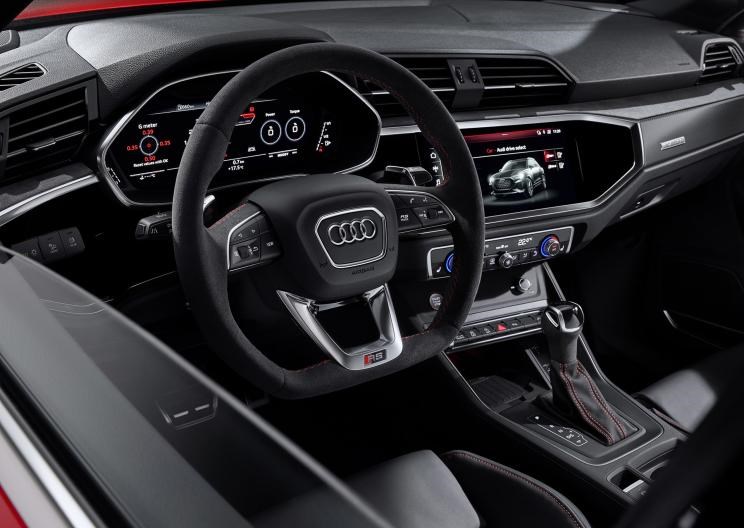 新RS Q3更多的变化发生在奥迪虚拟座舱部分,新的系统程序为其带来了RS专属主题仪表和赛道化功能,全液晶仪表盘增加了显示项目,包括G值显示、条状转速表、圈速计时器、加速性能/动力输出/胎压实时显示等。
