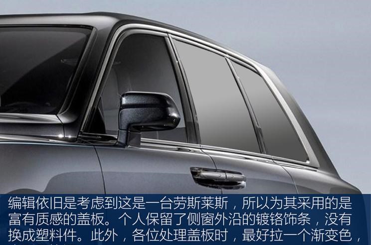处理的时候需要注意特定车型的一些特征,诸如厢式货车需要有反光条,后排玻璃需要进行替换等。编辑考虑到库里南(参数|询价)车型定位,并未一股脑的将其车身部件换成廉价感很强的塑料材质,而是保留了原厂设计。这些细节大家完全可以自行考虑,没有对错。