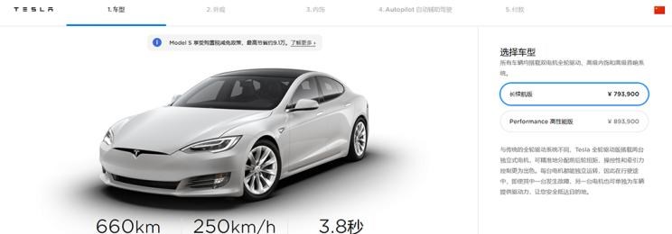 在特斯拉美国官网,Model S(参数|询价)长续航。