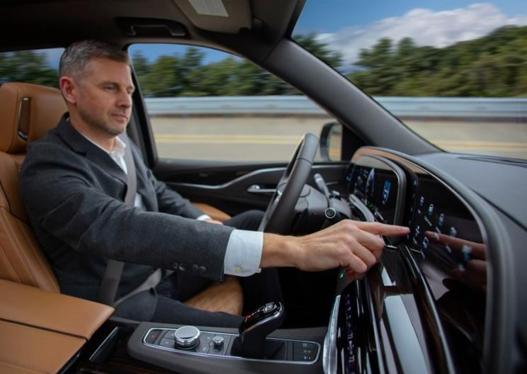 据悉,LG电子供应的这个数字化座舱拥有一块38英寸的OLED曲面屏面板,由两个车载信息娱乐屏幕和一个仪表盘屏幕组成,像素是4K电视的两倍。为了通过分屏解决驾乘人员的操作需求,凯雷德ESLACADE车内取消了大量物理按键,许多功能性操作均可通过分屏进行。