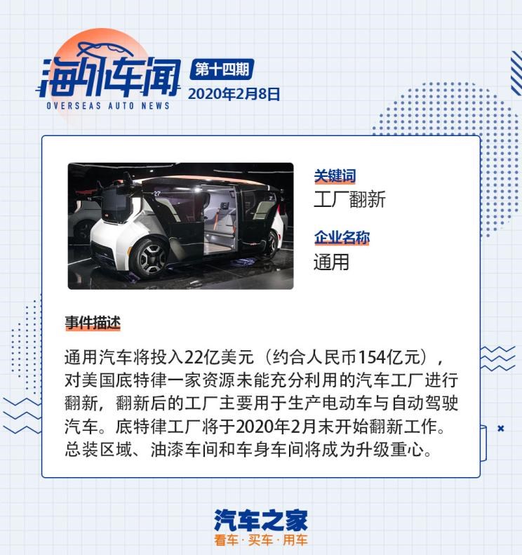 适逢元宵佳节,汽车之家携全体《海外车闻》制作团队先在这里为大家送上一份元宵节的祝福:祝愿大家新的一年万事胜意、幸福安康。在这个特殊的日子里,相信每个人都拥有一个属于自己的“关键词”,有的人是“坚守岗位”,有的人是“阖家团聚”,还有的人是“身体健康”……今天,《海外车闻》也为大家送上一周的新闻趣事,宅在家里的你,就请跟随汽车之家来看看,这一周发生了哪些海外新闻吧!