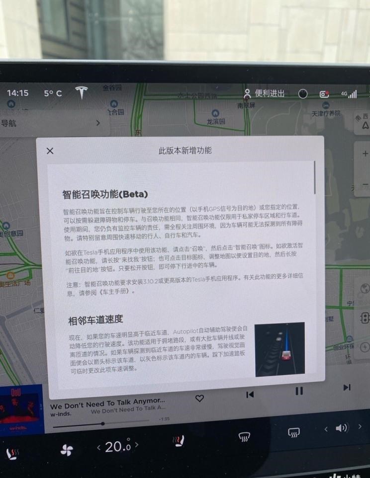其它更新方面,特斯拉还带来了“相邻车道速度”功能,可以让车辆保持与相邻车道车辆相近的速度;“露营模式”可以让车辆在驻车时,车载电器依然正常使用;“语音命令”则可以让车主通过语音实现对空调、导航、媒体等功能的控制,减少行驶过程中的手动操作。此外,新车机系统还增加了几款小游戏,以及对部分功能的细节优化。据了解,本次更新仅针对国内的EAP用户,预计一到两周时间便会正式向车主大面积推送。关于特斯拉的更多资讯,请持续关注汽车之家的后续报道。