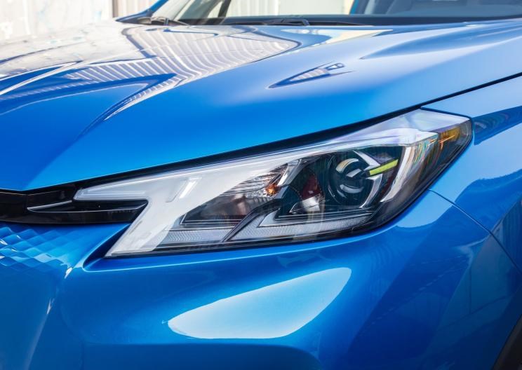 外观来看,新车整体造型与燃油版车型相似,并且加入了新能源车型特有的设计元素,例如采用封闭前格栅设计,配合下方造型夸张的三段式进气口设计,让该车看上去十分运动,不过前脸两侧的“进气口”仅为装饰,并没有通风作用。新车前大灯采用LED光源,两个箭头状的日间行车灯非常醒目,充电时前大灯会闪烁。此外,该车的快充口则设计在前封闭格栅LOGO内。