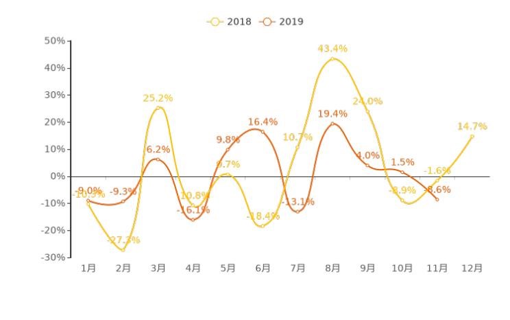 首先,我们来看一下用户整体购车热度的走势如何。2019年11月,乘用车用户意向数量环比下降8.6%,较上月环比下滑10.1%。整体来看,经历了“金九银十”的购车黄金期后,用户购车热情转而下降。